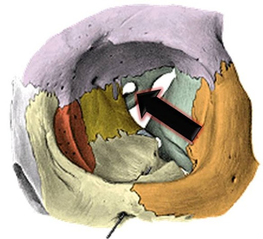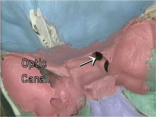 (visão anterior da órbita, mostrando o canal óptico (local de passagem do Nervo óptico e Art. Oflálmica. Desenho abaixo em detalhes)