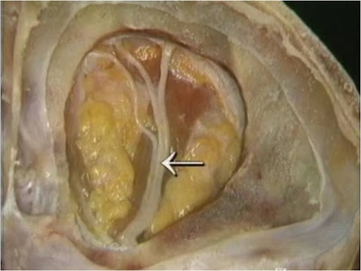 Na imagem a esquerda podemos visualizar o nervo óptico e abaixo dele a Art. Carótida Interna.